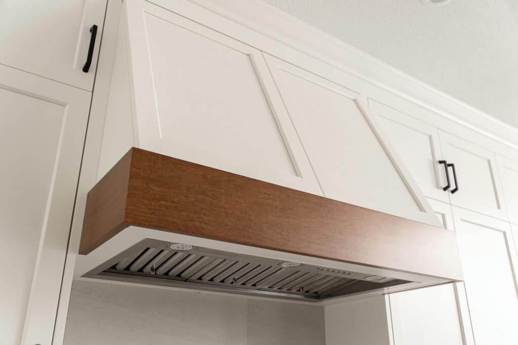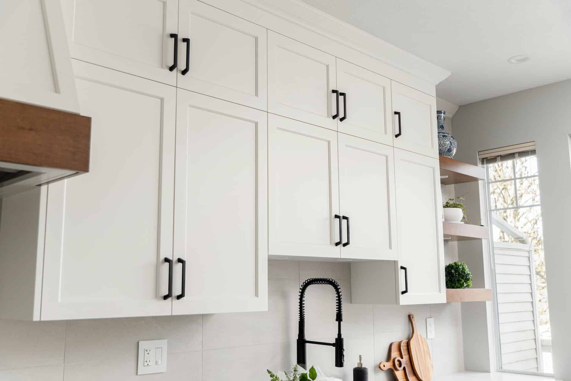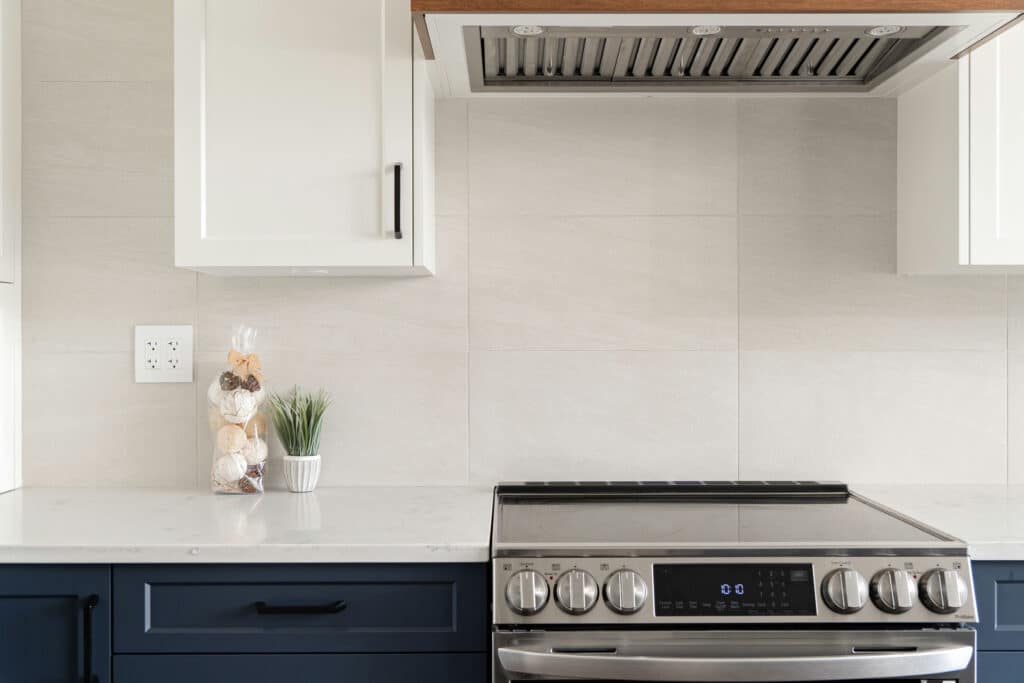- Countertop to ceiling tiled backsplash finished with crown moulding.