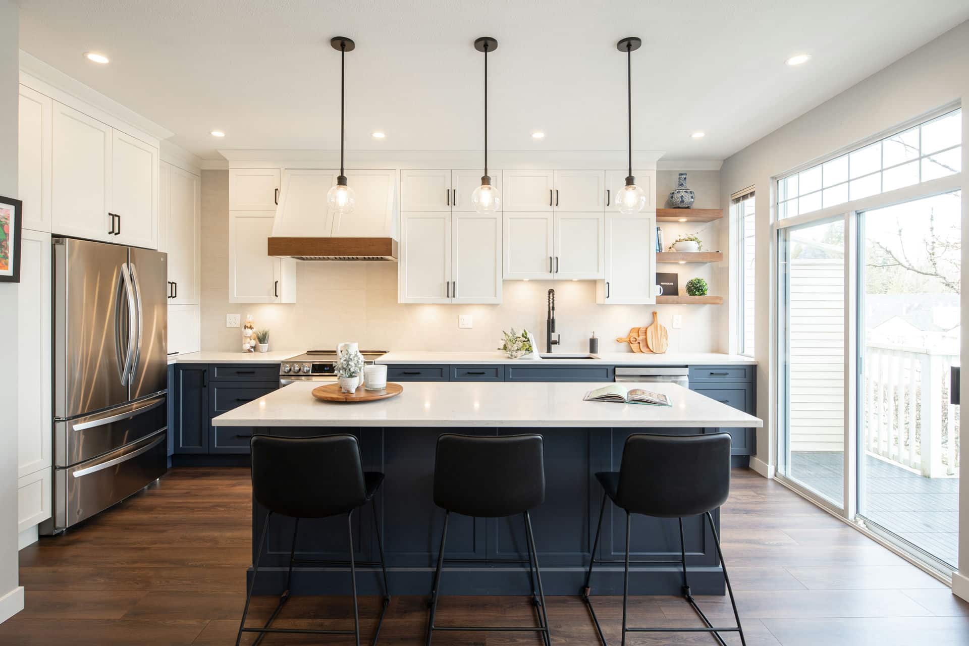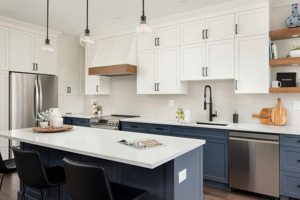 Busy family living in their townhouse that was long overdue for a refresh. The kitchen was small and the dining area was even smaller. They wanted to double the size of the kitchen so they can enjoy hosting parties and family gatherings. We also upgraded the flooringing throughout and renovated the downstairs powder room and the master bedroom ensuite bathroom.