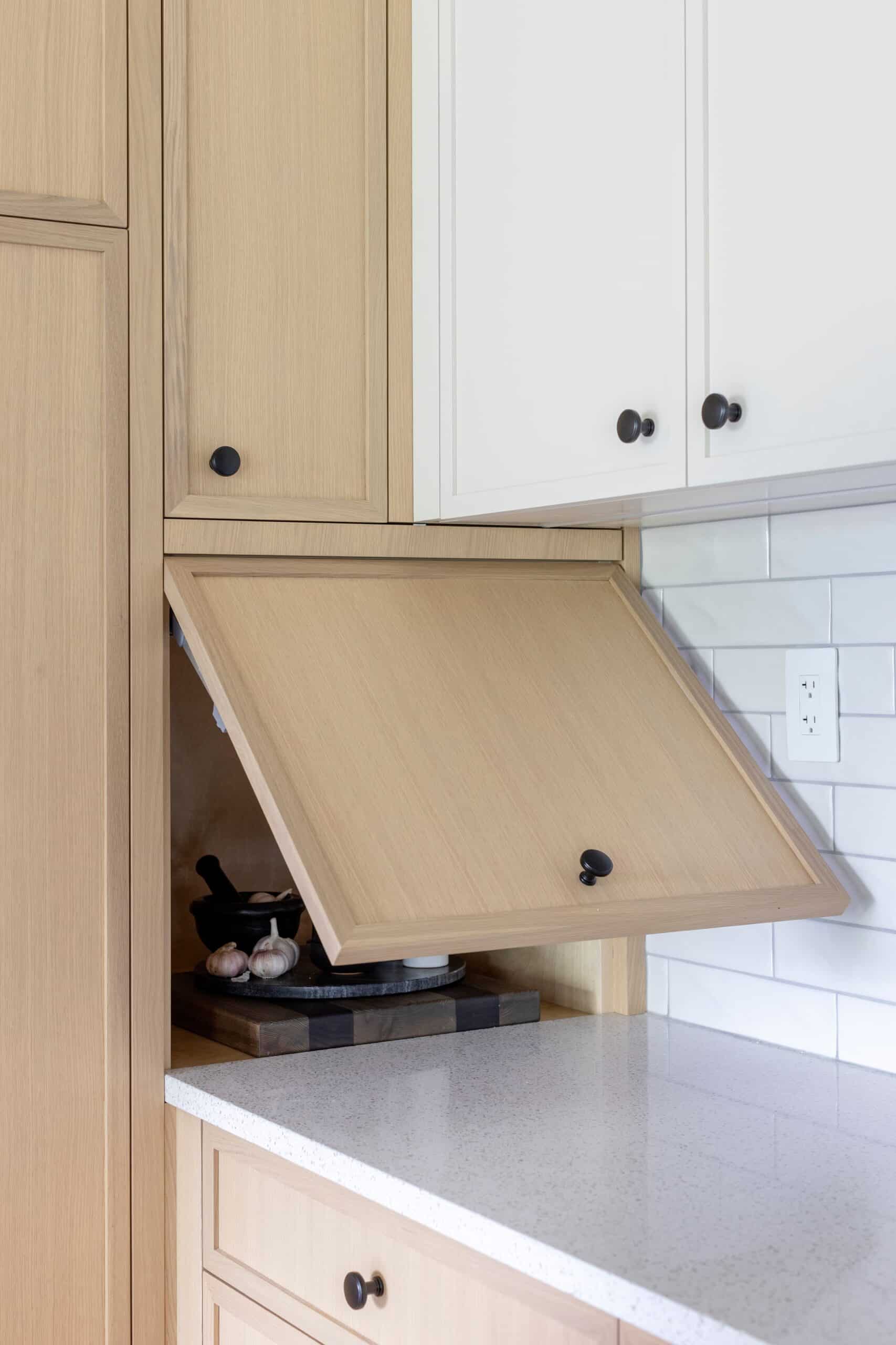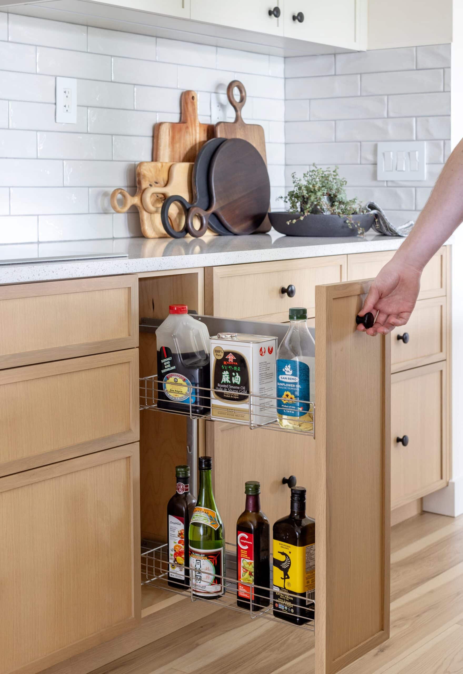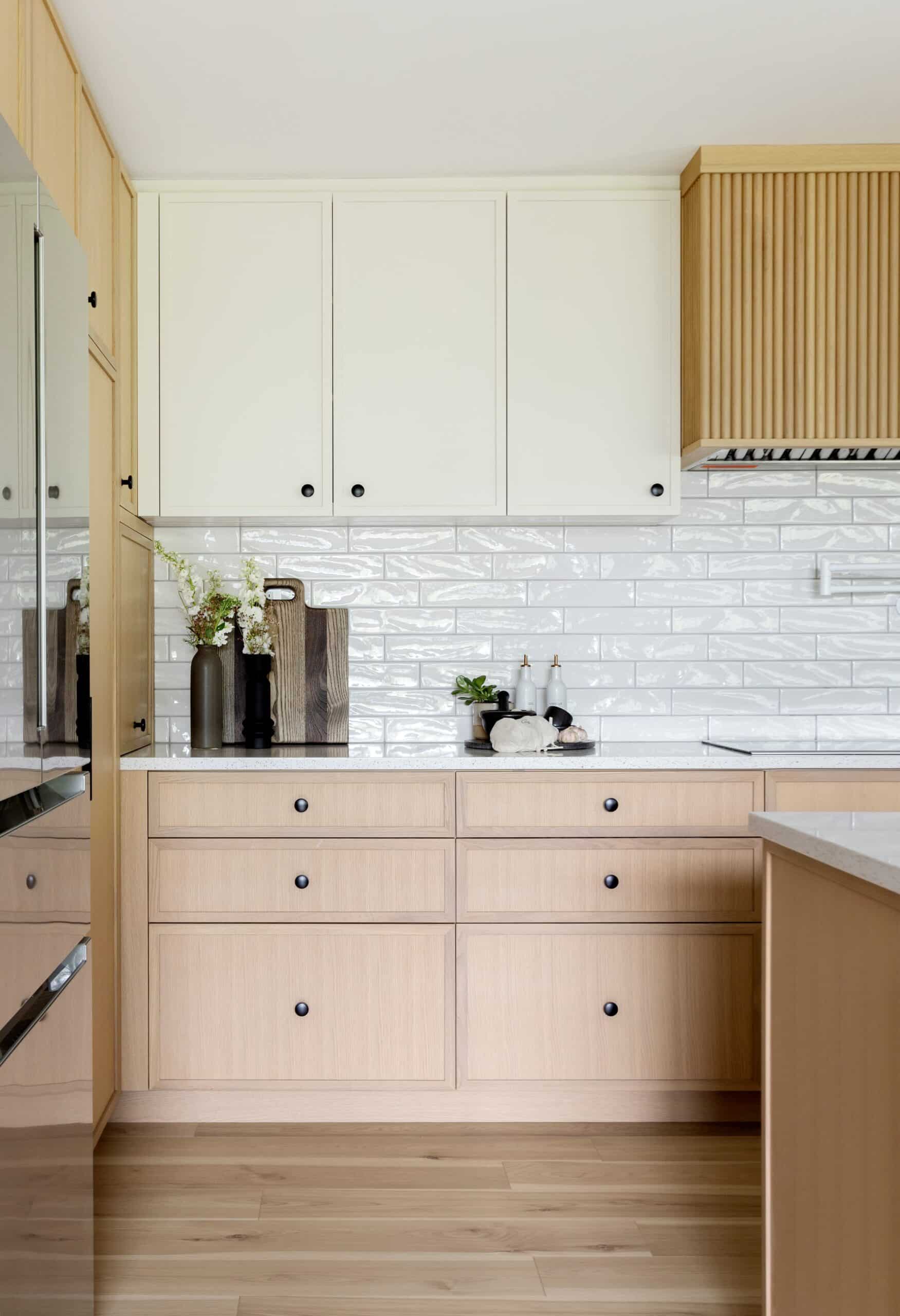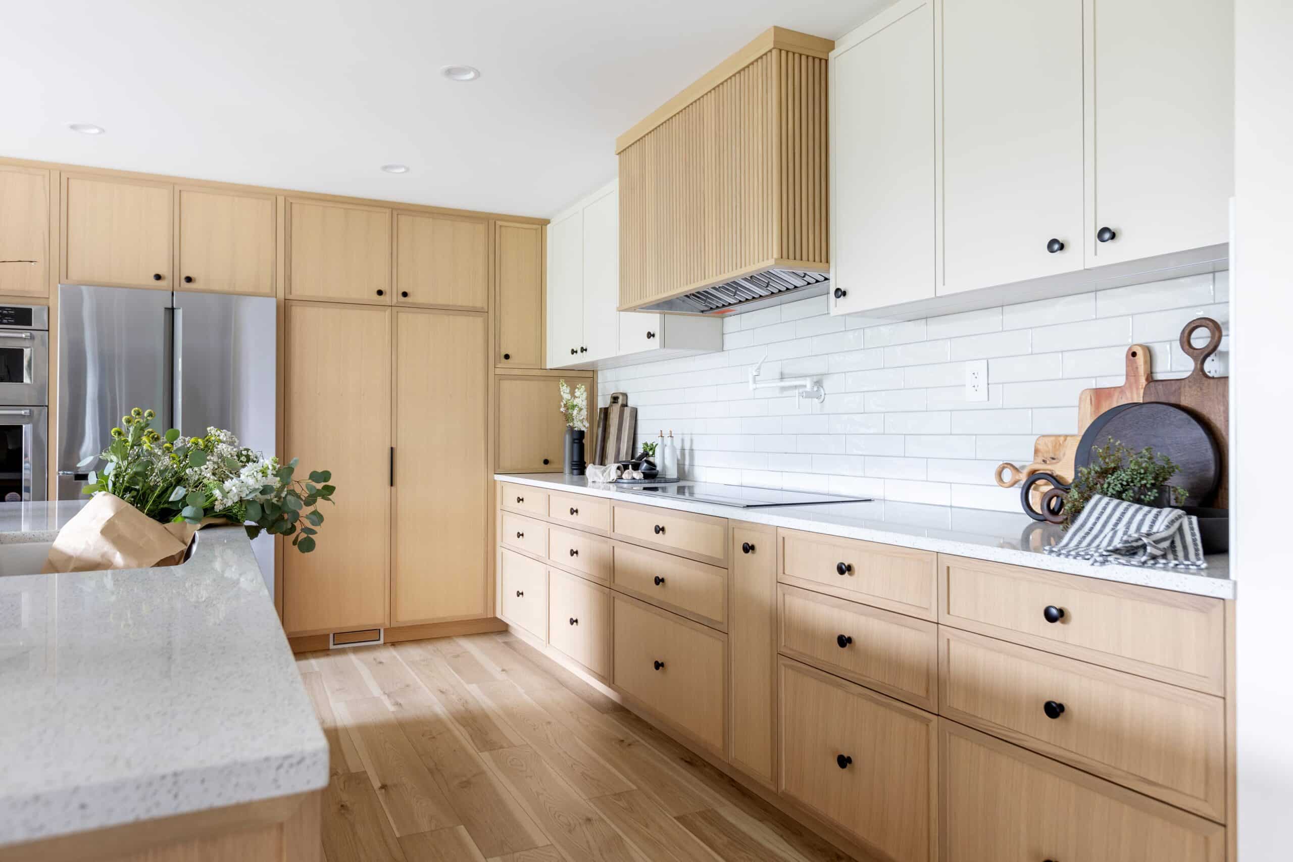 - Custom white oak cabinets