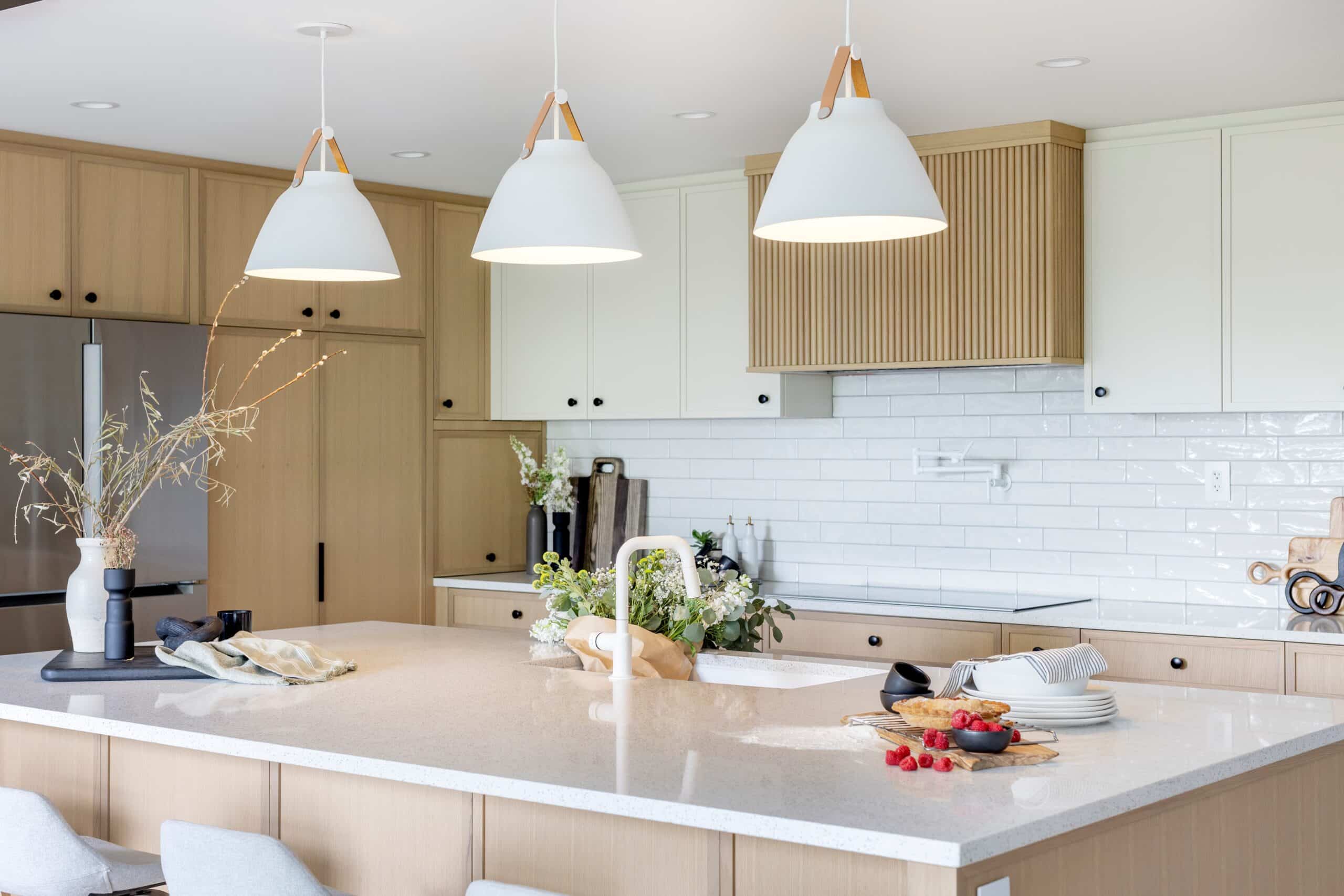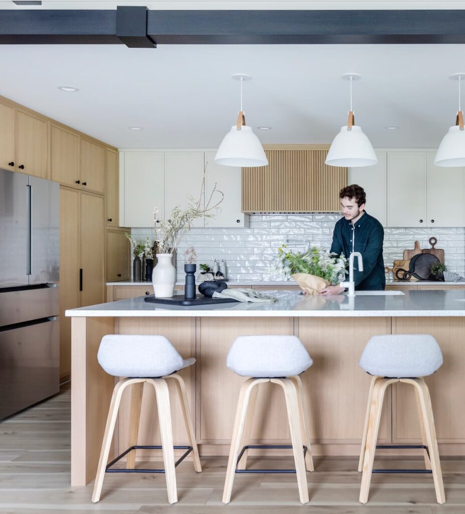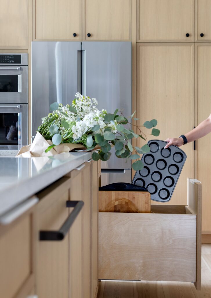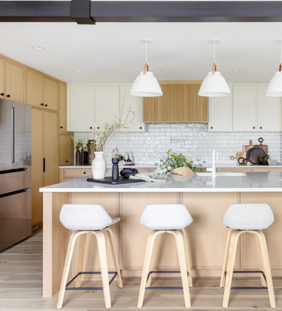 - Custom white oak cabinets