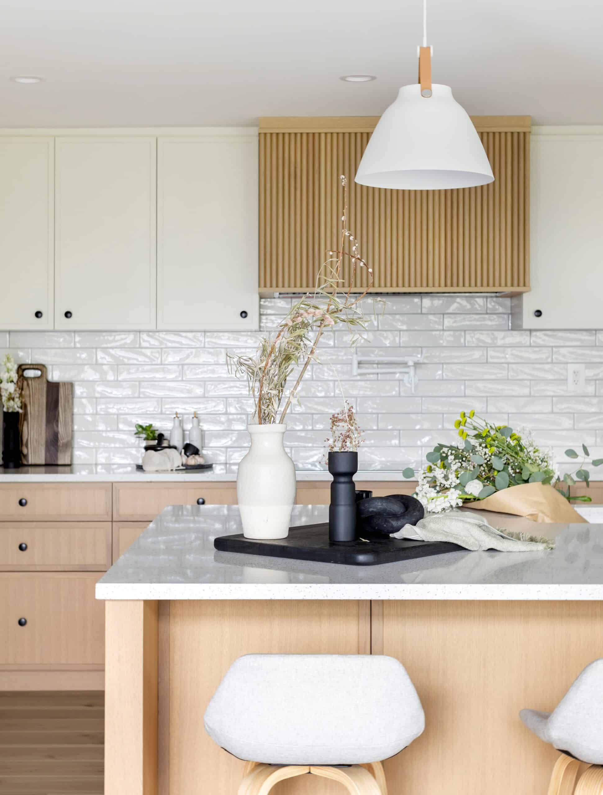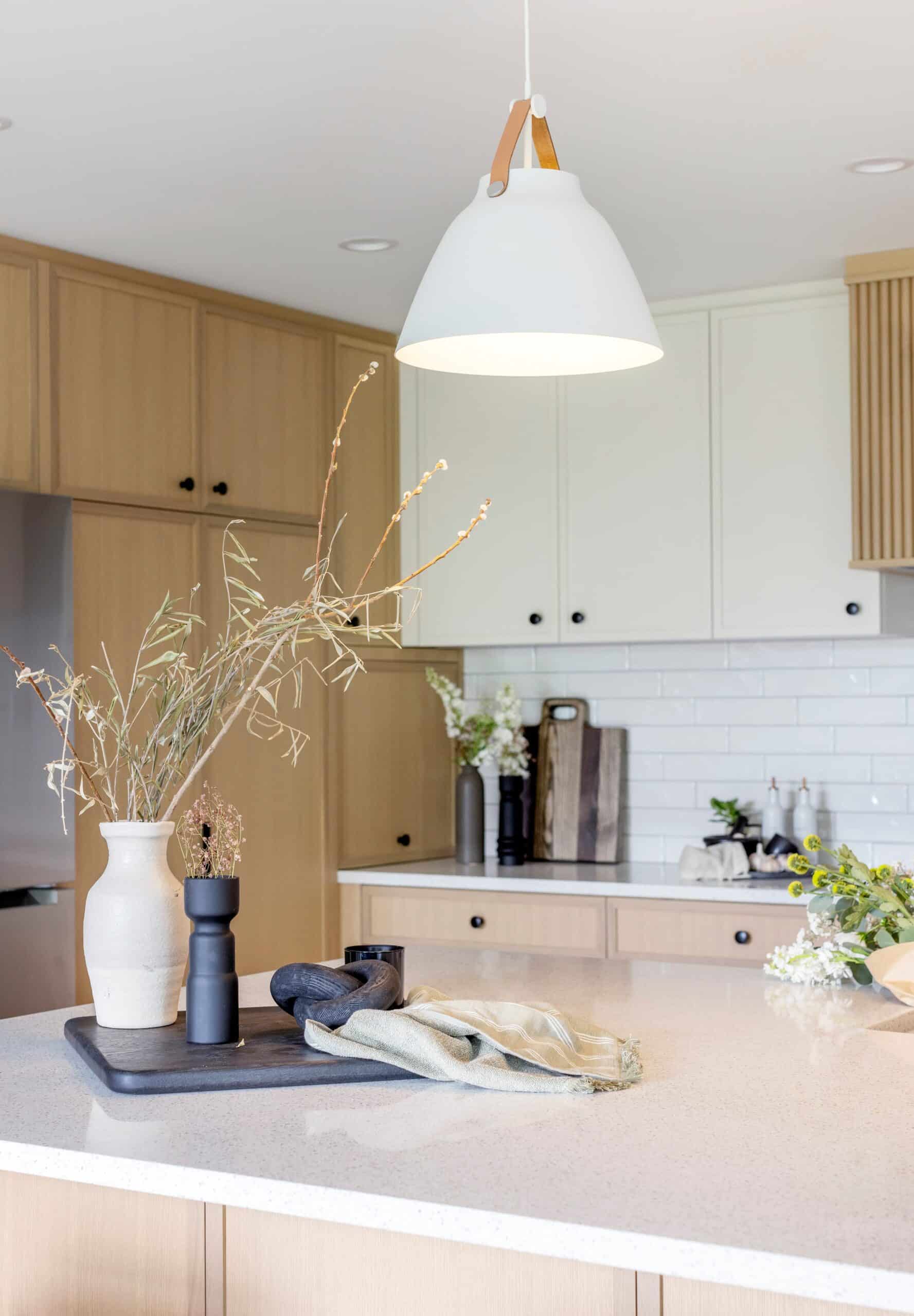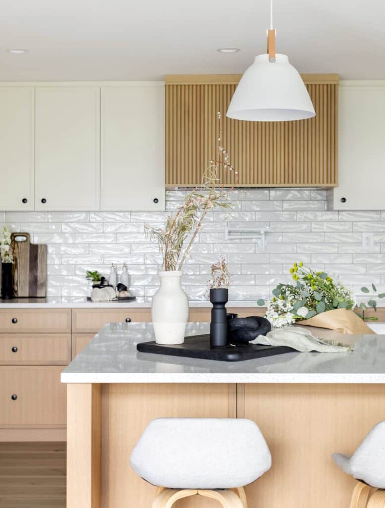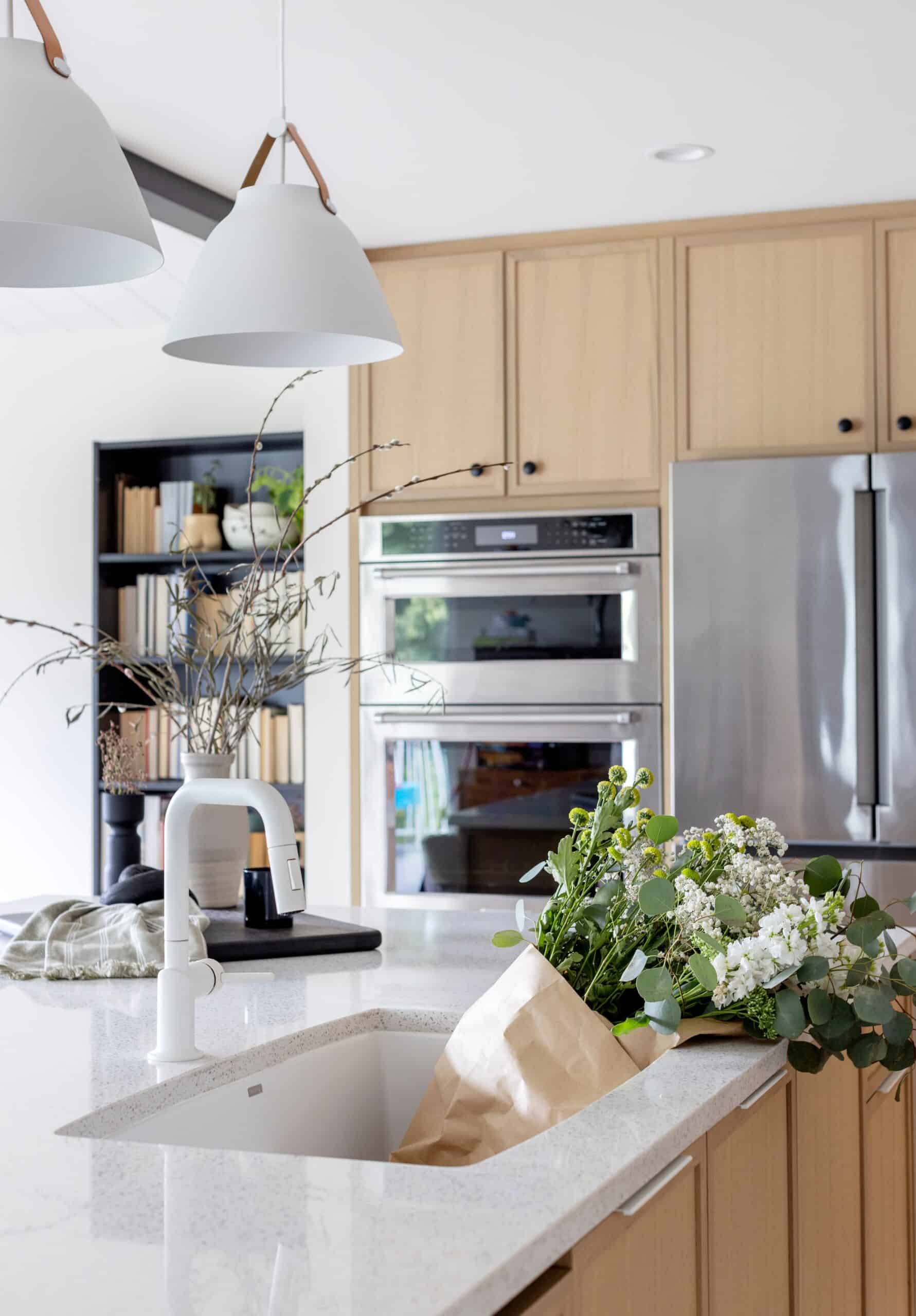 - Custom white oak cabinets